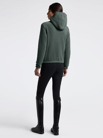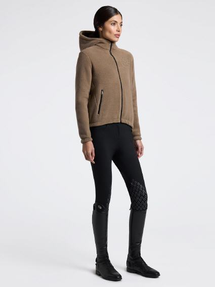 Der Cavalleria Toscana Women's Technical Fleece Zip Hoodie wurde entwickelt, um Wärme, Bewegungsfreiheit und zeitgemäßen Stil sowohl beim Reiten als auch in der Freizeit zu bieten. Er besteht aus gebürstetem technischem Fleece und bietet thermischen Komfort und Atmungsaktivität. Der wasserabweisende Frontreißverschluss und die heißversiegelten Taschenverschlüsse unterstreichen die Funktionalität und den modernen Look. Das innenliegende Gummiband am Saum sorgt für eine stabile und bequeme Passform. Dieser Kapuzenpullover ist mit dem ikonischen gestickten Cavalleria Toscana-Logo auf der Brust versehen und ist die perfekte Kombination aus Funktionalität und Eleganz.
