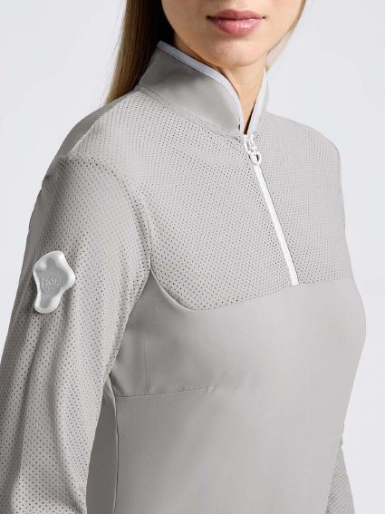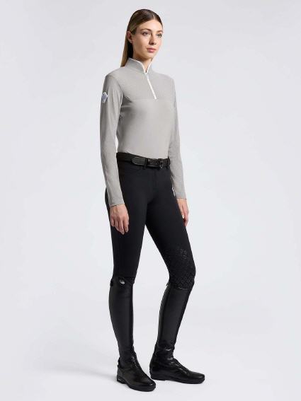 Das langärmelige technische Trainingspolo von Cavalleria Toscana für Damen wurde entwickelt um Komfort und Leistung zu bieten. Hergestellt aus atmungsaktivem Funktionsgewebe, sorgt es mit dem ergonomischen Schnitt für optimale Temperaturregulierung und Bewegungsfreiheit. Der praktische halbe Reißverschluss vorne sorgt für Funktionalität, während das Silikon-Logo ihm einen unverwechselbaren und eleganten Stil verleiht. Perfekt für Reiterinnen die ein vielseitiges und funktionelles Kleidungsstück suchen, ideal für intensive Trainingseinheiten und Zeit im Sattel.