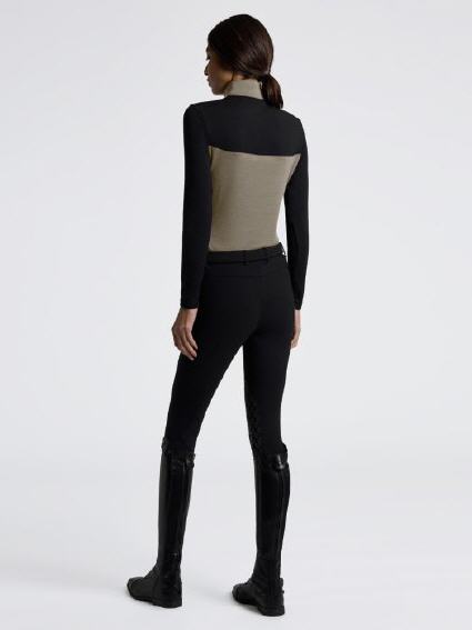 Das Cavalleria Toscana Damen Langarm Trainingspolo mit Halb-Reißverschluss ist aus technischer Wolle gefertigt und wurde entwickelt, um weibliche Reiterinnen bei sportlichen Aktivitäten an kühleren Tagen zu unterstützen. Das Design verfügt über wasserabweisenden, winddichten technischen Stoff an den Ärmeln und Schultern, während der Wollkörper für thermischen Komfort und Atmungsaktivität sorgt. Der hohe Kragen und der personalisierte Halb-Reißverschluss verbessern den Schutz und die Passform. Abgerundet mit dem hitzeaufgebrachten Logo von Cavalleria Toscana kombiniert dieses Polo Leistung, zeitgenössisches Design und funktionalen Stil.