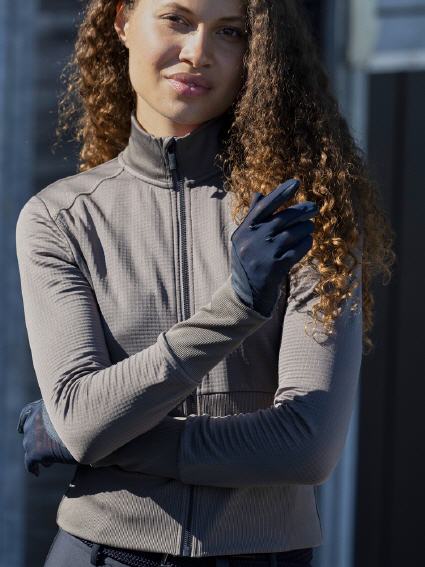 - Hoch gerippter Bund und Ärmelbündchen für einen formschönen Look