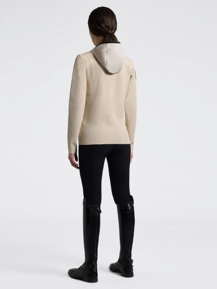 Diese Cavalleria Toscana Softshell-Jacke ist der perfekte Verbündeten bei schlechtem Wetter und verbindet raffinierte Ästhetik mit hoher Leistung. Hergestellt aus hochstrapazierfähigem, wasserabweisendem Extreme Jacquard Technical Fabric bietet es Schutz vor Wind und Regen, ohne die Atmungsaktivität zu beeinträchtigen. Das zweifarbige Design mit Seiten- und Ärmeleinlagen schafft eine moderne Silhouette, während die mikroartige Jacquard-Textur Tiefe verleiht. Die Reißverschlüsse sind gummiiert und wasserdicht, sodass Ihre Sachen trocken bleiben. Die ergonomische Kapuze und die elastischen Manschetten sorgen für eine optimale Passform. Ideal zum Reiten und Outdoor-Aktivitäten.