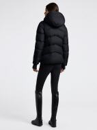 Die Cavalleria Toscana Women's Padded Nylon Hooded Jacket ist ein technisches Kleidungsstück, das bei kaltem Wetter Wärme und Schutz bietet. Der Außenstoff ist wasserabweisend und langlebig, während die Innenkonstruktion für thermischen Komfort sorgt. Es verfügt über einen hohen Kragen, eine umlaufende Kapuze, mit Fleece gefütterte Taschen und heißversiegelte Reißverschlüsse. Diese wattierte Jacke mit dem Cavalleria Toscana-Logo auf dem Ärmel vereint sportliche Eleganz mit Funktionalität – perfekt für das Reiten und den Alltag.