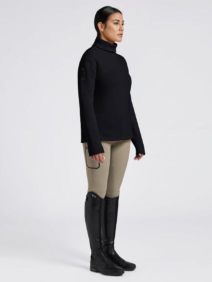 Der Oversize-Pullover aus Lambswool von Cavalleria Toscana für Damen ist ein unverzichtbares Kleidungsstück für Reiter, die an kälteren Tagen Komfort und Stil suchen. Dieser Pullover aus hochwertiger Lammwolle bietet ein warmes und weiches Tragegefühl und eignet sich damit perfekt für den Alltag und die Entspannung nach Wettkämpfen. Die natürliche Wolle sorgt für hervorragende thermische und atmungsaktive Eigenschaften und hält den Körper auch unter härtesten Bedingungen warm und trocken. Das Design des Pullovers verfügt über einen hohen Oversize-Kragen, der sich ideal zum Schutz vor Wind und Kälte eignet. Die langen Ärmel und der Rumpf des Pullovers haben eine lockere Passform, die Bewegungsfreiheit und dauerhaften Komfort gewährleistet. Rippstrickdetails an den Bündchen und am Saum verleihen dem Kleidungsstück einen Hauch von Eleganz und Raffinesse, während die schlichte Strickkonstruktion ihm einen sauberen und modernen Look verleiht. Das CT-Logo, das auf dem rechten Ärmel aufgestickt ist, steht für die Liebe zum Detail und das Engagement für Qualität bei Cavalleria Toscana.