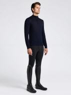 Der Cavalleria Toscana Herrenpullover mit hohem Kragen und Reißverschluss vereint Raffinesse und Funktionalität. Vollständig aus hochwertiger Merinowolle gefertigt, bietet es optimale Weichheit und Wärme und ist damit perfekt für kalte Tage. Das Design zeichnet sich durch einen halben Reißverschluss mit Nickelbeschichtung und gestickte Details wie das CT-Jacquard-Logo aus, die einen unverwechselbaren und modernen Touch verleihen. Elastische Rippabschlüsse an Ärmelbündchen und Saum sorgen für eine makellose Passform. Ideal für einen lässig-schicken Look oder sportliche Aktivitäten, ist dieser Pullover eine vielseitige und elegante Ergänzung für die Garderobe eines jeden Mannes.