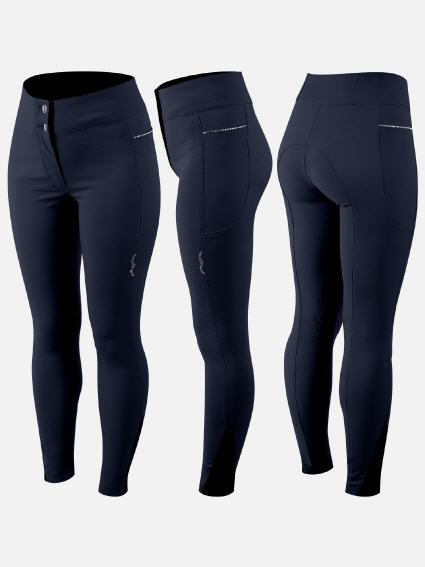 Nowhere ist eine hoch taillierte Damen-Reitleggings mit Kniebesatz, die Eleganz, Funktionalität und Komfort vereint. Die praktischen und geräumigen Seitentaschen sorgen für Komfort, ohne den Stil zu beeinträchtigen. Silberne Nietenverzierungen an der Passe und den Taschen verleihen eine raffinierte und unverwechselbare Note. Der Diagotel-Stoff ist extrem elastisch, atmungsaktiv, langlebig, weich und kühl und sorgt für maximalen Komfort bei Aktivitäten. Das figurbetonte Design betont die Silhouette mit einem Push-up-Effekt. Das strassbesetzte Albatros-Logo auf dem linken Bein verleiht einen eleganten letzten Schliff.