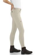 EGO7 Damen Reithose aus funktionalem Stoff mit schönen Klapptaschen hinten. Die Reithose bietet durch den speziellen Knie-Grip einen besonderen Halt im Sattel. Das Stretch Material gewährleistet eine optimale Passform. Die Materialzusammensetzung lässt die Reithose nicht zerknittern, die ursprüngliche Passform bleibt erhalten. Zudem ist die Reithose blickdicht, atmungsaktiv und transportiert entstehende Feuchtigkeit nach außen. Sie besticht durch ihre schlichte und elegante Optik.