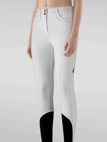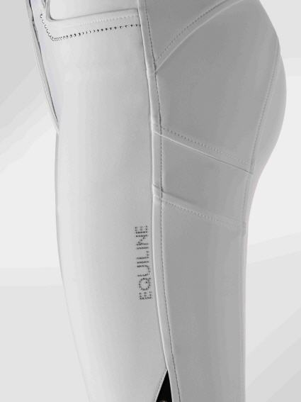 EQUILINE Damen Reithose mit Fullgrip und schönen Details und hohem Bund. Aus B-Move All Seasons Material gefertigt bietet diese Reithose außergewöhnliche Elastizität und Komfort. Das Design mit hoher Taille sorgt sowohl für eine schmeichelhafte Passform als auch für zusätzlichen Halt. Das innovative "Y"-Vollgripsystem verbessert die Kontrolle und Stabilität. Zu den Designmerkmalen gehören glamouröse Ton-in-Ton-Strasssteine auf der Vordertasche und Ton-in-Ton-Strasssteine mit Equiline-Logo auf der Rückseite. Mit einem Stretch-Befestigungssystem mit Logo am unteren Bein verbindet diese Reithose Funktionalität und Stil nahtlos.