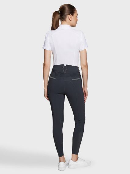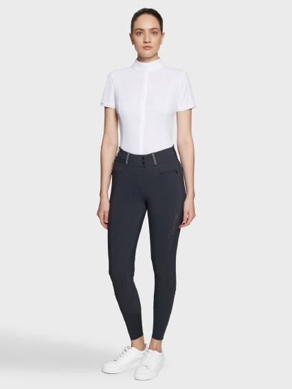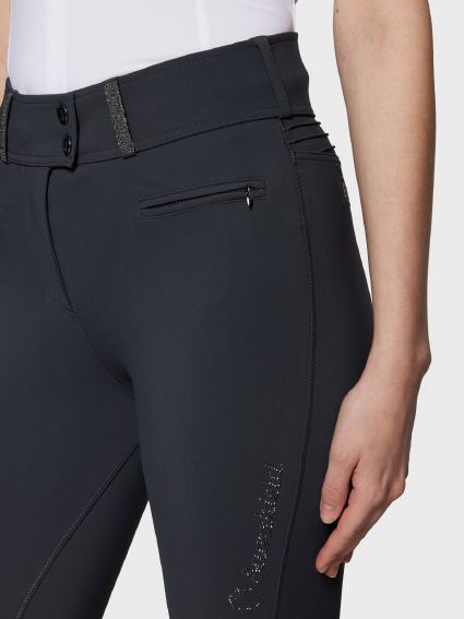 Die Samshield Claranova Reithose mit ihrem eleganten Design mit Swarovski-Logo® auf dem Oberschenkel und Kristall-Details an Taschen und Bund sorgt für einen edlen Look. Atmungsaktives, dehnbares Material mit Handytasche mit Reißverschluss und höherem Bund hinten.