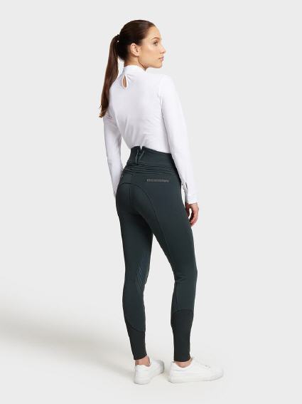 Die Reithose hat eine ultrahoher Taille mit stilisiertem V-Schnitt und Faltendetails auf der Rückseite. Diese Hose ist mit Swarovski "Ultra Fine Rock" Gürtelschlaufen und Taschendetails, raffinierten Nähten und einem klassischen Kristalllogo verziert und verkörpert mühelos raffiniertes Design. Hergestellt aus italienischem Vier-Wege-Stretch-Material, das ein Gefühl wie eine zweite Haut mit vollständiger Bewegungsfreiheit dank eines sechslagigen Vollgrips bietet, der für vollständige Stabilität im Sattel sorgt. Zu den weiteren Merkmalen gehören eine Handytasche, eine Kompressionszone im Wadenbereich, um die Durchblutung zu erhöhen, und ein innerer elastischer Einsatz am Bund, um Ihr Shirt an Ort und Stelle zu halten.