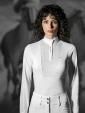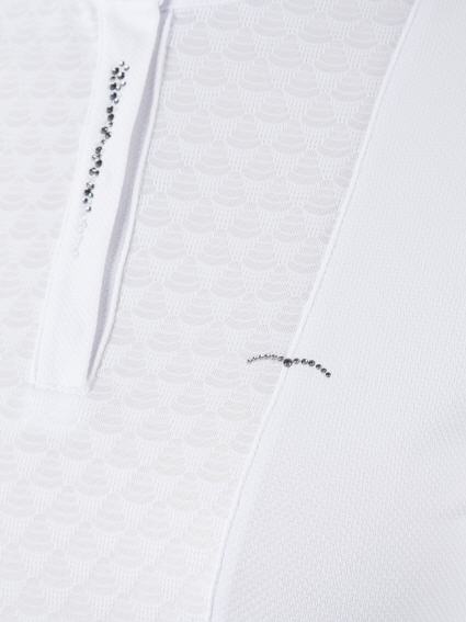 Erleben Sie das Brulla Women's Long-Sleeve Competition Polo von ANIMO, eine perfekte Mischung aus klassischem Design und moderner Performance. Dieses Poloshirt verfügt über einen Einsatz aus weißem Jacquardstoff auf der Vorderseite und an den Ärmeln mit verdeckten Knöpfen, die mit Strasssteinen verziert sind.