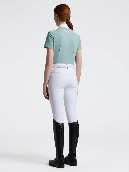 Das kurzärmelige Damen-Wettkampfshirt Cavalleria Toscana wurde entwickelt, um hohe Leistung und tadellosen Stil zu bieten. Hergestellt aus leichtem technischem Gewebe mit perforierten Jersey-Einsätzen, sorgt es für hervorragende Atmungsaktivität und Komfort während des Wettkampfs. Der weiße Popeline-Kragen und der unsichtbare Reißverschluss sorgen für Eleganz und Funktionalität, während das thermoapplizierte gestickte Logo auf dem Rücken und dem Kragen für einen unverwechselbaren Touch sorgt. Mit seinem ergonomischen Schnitt und den hochwertigen Materialien ist dieses Shirt die perfekte Wahl für Fahrer, die ein funktionales und raffiniertes Kleidungsstück suchen.