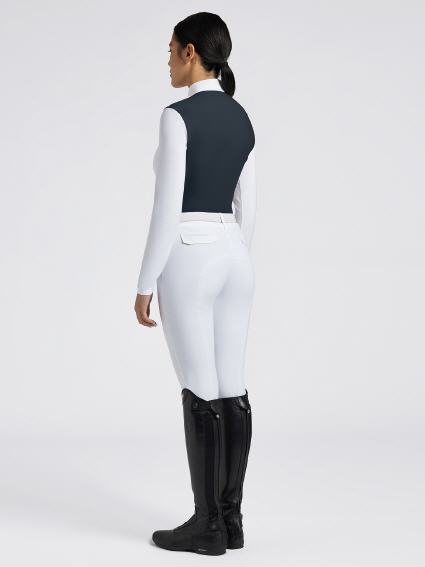 Das Cavalleria Toscana Reitshirt für Damen verkörpert Eleganz und technische Leistung und wurde für anspruchsvolle Reiterinnen entwickelt, die hochwertige Bekleidung verlangen. Dieses Hemd aus hochwertigem technischem Jersey ist für seine Strapazierfähigkeit und Atmungsaktivität bekannt und sorgt auch bei den intensivsten Wettkämpfen für hervorragenden Komfort. Das raffinierte Design zeichnet sich durch kontrastierende Einsätze auf der Vorder- und Rückseite aus, die für einen Hauch von Raffinesse und exklusivem Stil sorgen. Der weiße Kragen und der beschichtete Reißverschluss in der Mitte sind markante Details, die den Look des Kleidungsstücks aufwerten, während das gestickte CT-Logo auf dem Kragen das Engagement von Cavalleria Toscana für Exzellenz unterstreicht.