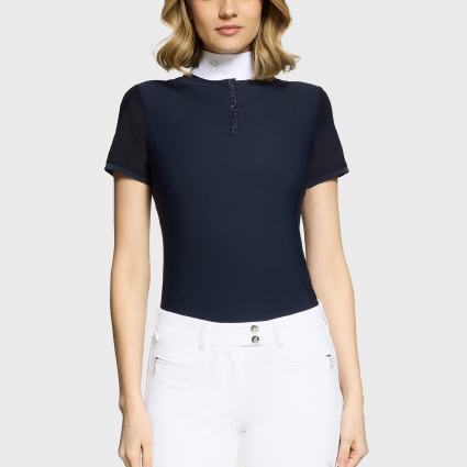 Das Roxy Premium Boreal Competition Reitshirt hat einen schmalen Schnitt und einen strukturierten hohen Kragen, der eine elegante und selbstbewusste Silhouette bietet.
