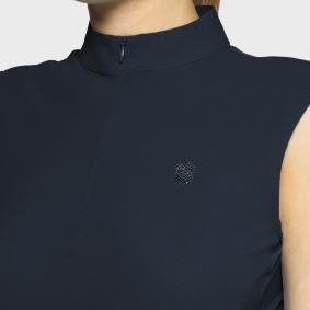 Aus einem technischen, atmungsaktiven und ultra-dehnbaren italienischen Stoff gefertigt, bietet es konstanten Komfort und ein Gefühl der zweiten Haut. Netzeinsätze am unteren Rücken und an den Ärmeln sorgen für gezielte Belüftung, ideal für das Training selbst. Der tropfenförmige Schnitt am Kragen, verstärkt durch eine Blasonierung von Swarovski, verleiht eine subtile weibliche Note, während der unsichtbare halbe Reißverschluss mit ultrafeinen Steinen und der magnetische Verschluss des Kragens eine moderne Verfeinerung darstellen.
