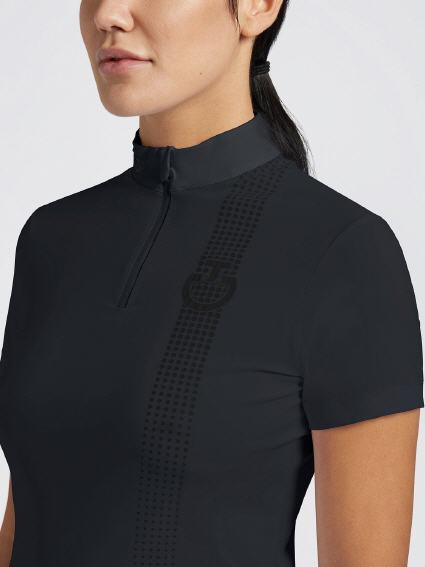 Schönes Trainingsshirt von Cavalleria Toscana. Hergestellt aus hochwertigem technischem Jersey-Gewebe, sorgt dieses Shirt für Strapazierfähigkeit und Atmungsaktivität. Das Design verfügt über einen zentralen, gummierten halben Reißverschluss, der ein einfaches Tragen und eine Temperaturregulierung ermöglicht. Der gepunktete Print auf der Vorderseite und das erhabene Cavalleria Toscana-Logo aus Silikon auf der Brust verleihen einen unverwechselbaren und raffinierten Touch. Das gestickte Cavalleria Toscana Logo am Kragen runden den eleganten und funktionalen Look ab.