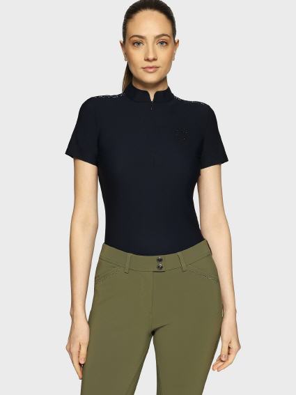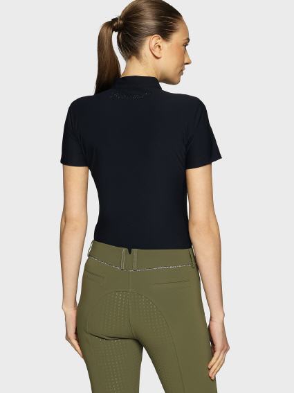 Die Bruna Premium mit kurzen Ärmel und der dezente Kragen bieten Komfort und Eleganz, während sie eine schlanke Silhouette bewahren.