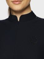 Swarovski Ultra Fine Rocks Einsätze auf den Schultern verleihen einen dezenten Glanz, während das Samshield Swarovski Crystal Blasonierung auf der Vorderseite und das ton-auf-ton bestickte Logo mit Swarovski-Details auf der Rückseite des Kragens für Raffinesse und Raffinesse sorgen. Der ton-on-ton-sichtbare halbe Reißverschluss vervollständigt dieses ultraleichte und funktionale Oberteil, ideal fürs Training.