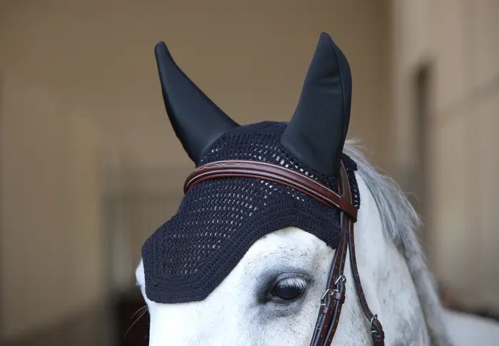 Die Fliegenmütze Wellington Soundless schützt die Ohren des Pferdes beim Reiten gegen Fliegen und verhindert, dass das Pferd von Geräuschen abgelenkt wird. Handgestrickt für bessere Haltbarkeit, sieht die Fliegenmütze sehr modisch und professionell aus. Das Material um die schalldichten Ohren ist dehnbar und dünn. Daneben ist das Genickstück verlängert, so dass nichts rutschen kann.