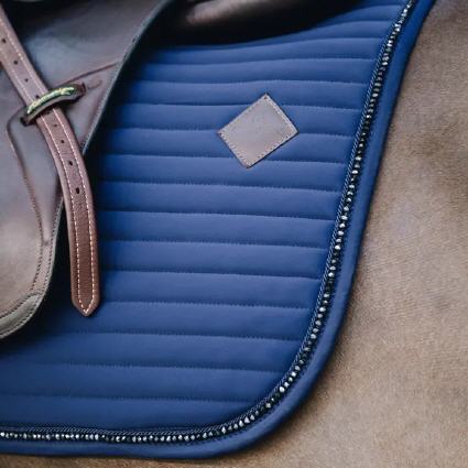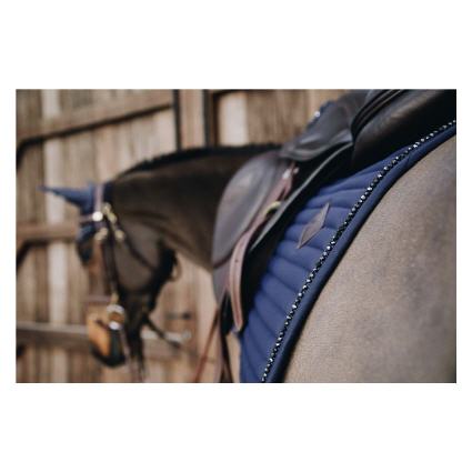Die Springschabracke Pearls von Kentucky! Die Liniensteppung, das Kentucky Ton-in-Ton-Logo und das Band mit Perlen verleihen der Schabracje ein elegantes Aussehen. Die ergonomische Form sorgt für maximale Bewegungsfreiheit. Zudem besitzen die verwendeten, synthetischen Materialen atmungsaktive, schnelltrocknenden und stoßabsorbierende Eigenschaften. Dadurch wird ein angenehmes Tragegefühl gegeben, zudem wird der empfindliche Pferderücken geschont.