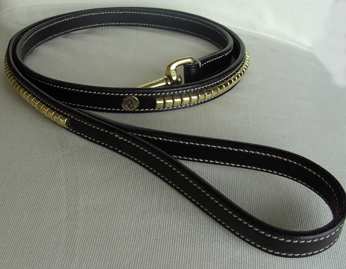Schöne Hundeleine von PARIANI aus Leder mit Clinker-Besatz in den Farben braun oder schwarz.