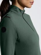 Das Cavalleria Toscana Damen Langarm-Trainings-Poloshirt aus Fleece-Jersey mit Rollkragen wurde entwickelt, um thermischen Komfort und volle Bewegungsfreiheit beim Fahren oder bei Outdoor-Aktivitäten zu bieten. Das technische Fleece-Jersey-Material sorgt für leichte Isolierung und Atmungsaktivität, während der halbe Reißverschluss und der Rollkragen Windschutz bieten, ohne Kompromisse beim Stil einzugehen. Es verfügt über heißversiegelte Details und eine Seitentasche mit versiegeltem Reißverschluss und ist mit dem Cavalleria Toscana-Silikonlogo auf dem Ärmel versehen. Ein leistungsorientiertes Poloshirt mit kühnem Design – ideal für den modernen Reiter.