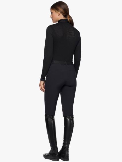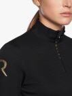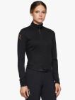 Langärmeliges Funktionsshirt aus R-EVO Premier Tech Wool mit perforiertem Stoff auf der Rückseite, hohem Kragen und getaptem kurzem Reißverschluss. Dieser Zipper ist Reitern gewidmet, die sich für die funktionelle Eleganz von Cavalleria Toscana entscheiden und ihn während des Pferdetrainings und bei Outdoor-Anlässen tragen. Das Modell besteht aus R-EVO Premier Tech Wool: einer Mischung aus Wolle und Polyamid, die Schweiß trocknet.