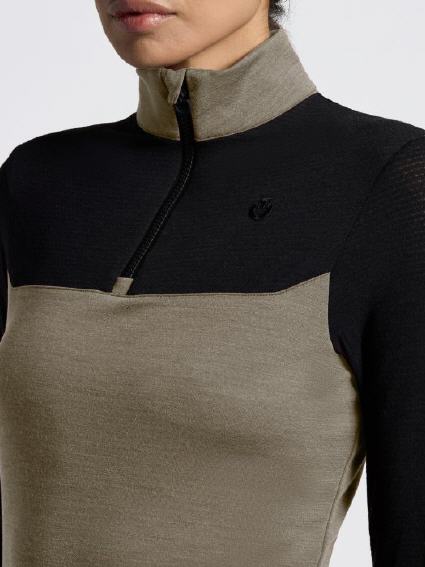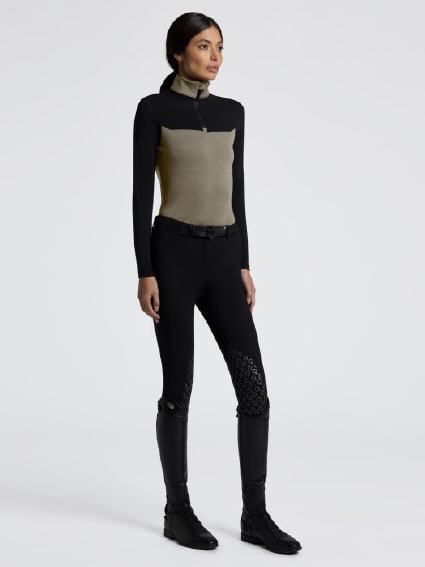 Das Cavalleria Toscana Damen Langarm Trainingspolo mit Halb-Reißverschluss ist aus technischer Wolle gefertigt und wurde entwickelt, um weibliche Reiterinnen bei sportlichen Aktivitäten an kühleren Tagen zu unterstützen. Das Design verfügt über wasserabweisenden, winddichten technischen Stoff an den Ärmeln und Schultern, während der Wollkörper für thermischen Komfort und Atmungsaktivität sorgt. Der hohe Kragen und der personalisierte Halb-Reißverschluss verbessern den Schutz und die Passform. Abgerundet mit dem hitzeaufgebrachten Logo von Cavalleria Toscana kombiniert dieses Polo Leistung, zeitgenössisches Design und funktionalen Stil.