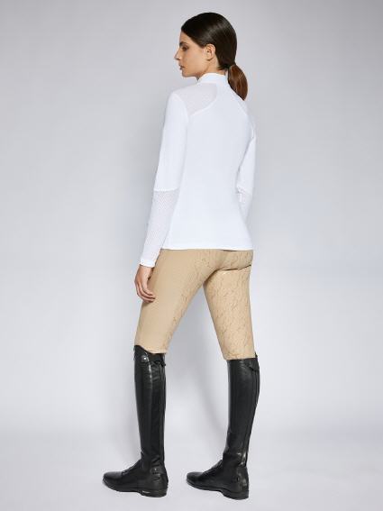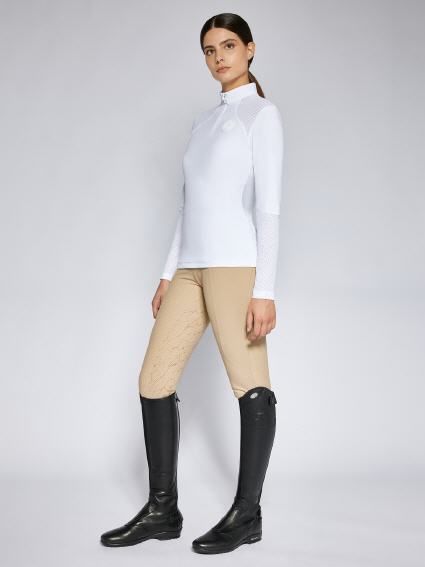 Wir stellen das vielseitiges Cavalleria Toscana Polo aus fortschrittlichem technischem Trikot vor, das speziell für anspruchsvolle Reiterinnen entwickelt wurde, die eine perfekte Mischung aus Funktionalität und Mode suchen. Der Frontreißverschluss sorgt nicht nur für einen Hauch von Stil, sondern auch für Komfort, da er das An- und Ausziehen erleichtert. Erleben Sie unvergleichliche Atmungsaktivität und Komfort während Ihrer Trainingseinheiten dank strategisch platzierter perforierter Einsätze. Das durchdachte Design dieses Poloshirts erweitert seine Benutzerfreundlichkeit auf alle Jahreszeiten und verschiedene Situationen. Die langen Ärmel bieten zusätzlichen Schutz und eignen sich daher sowohl für Reitaktivitäten als auch für den Freizeitalltag. Werten Sie Ihre Reitgarderobe mit diesem stilvollen und praktischen Polo auf, das Leistung und Mode nahtlos kombiniert."