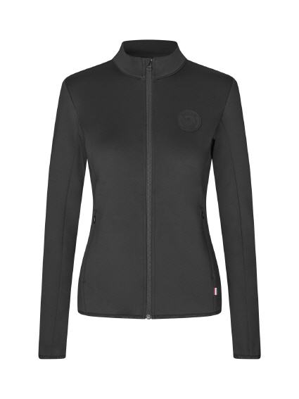 Stylishe Schmuckdetails: Diese Jacke ist mit dem Kingsland-Aufnäher und einem Silikonknopf am Reißverschluss versehen, was der Reitbekleidung einen Anklang von Eleganz verleiht."