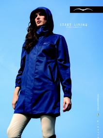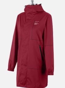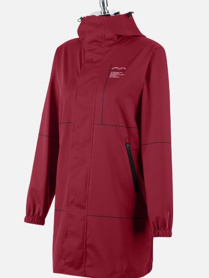 Winddichter und wasserabweisender 3/4 Damen Mantel mit Kapuze. Zwei Fronttaschen mit sichtbarem Reißverschluss.