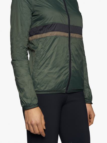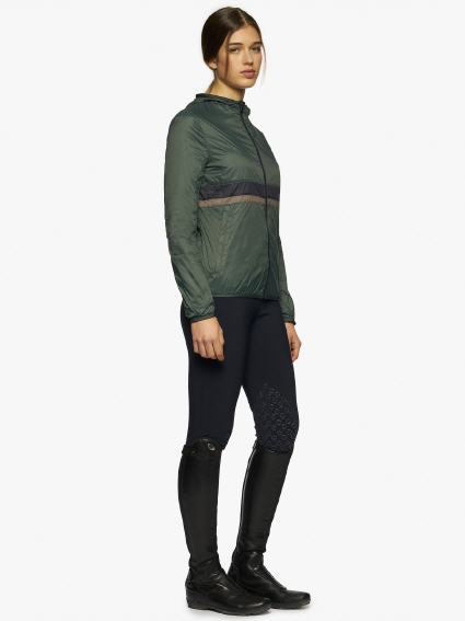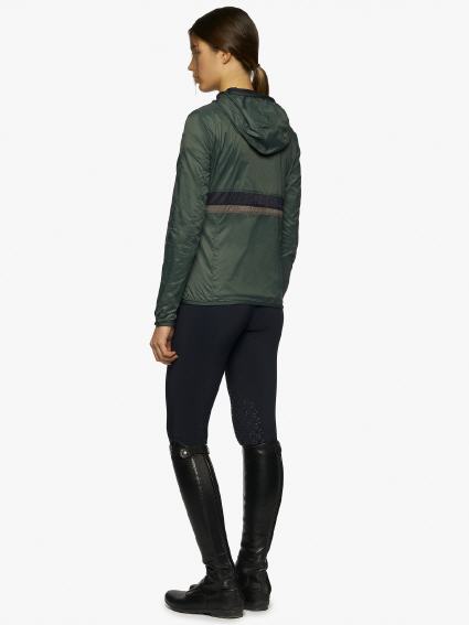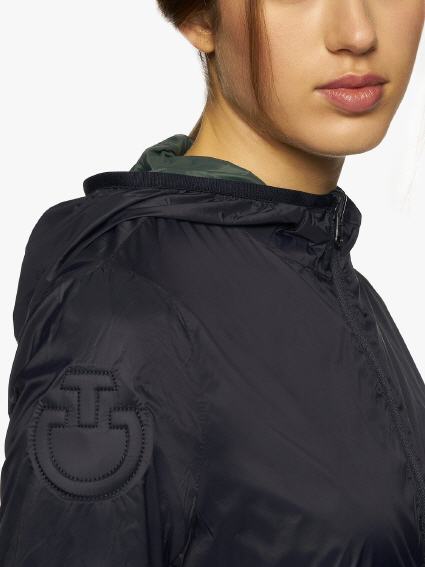 Die andere Seite ist in grün mit farblich abgesetzten Zierstreifen und hat ebenfalls zwei Reißverschlusstaschen und einen Cavalleria Toscana Schriftzug an der Schulter. Einfassung an Bund, Ärmel und Kapuze mit Lycra-Band.