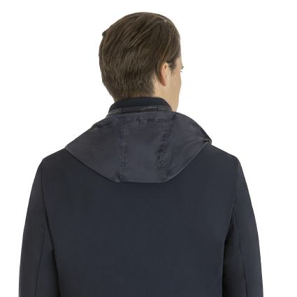 Mit Reißverschluss im Kragen verstaubare Kapuze. Getapter Zwei-Wege-Reißverschluss vorn, getapte Reißverschlüsse an den Taschen.