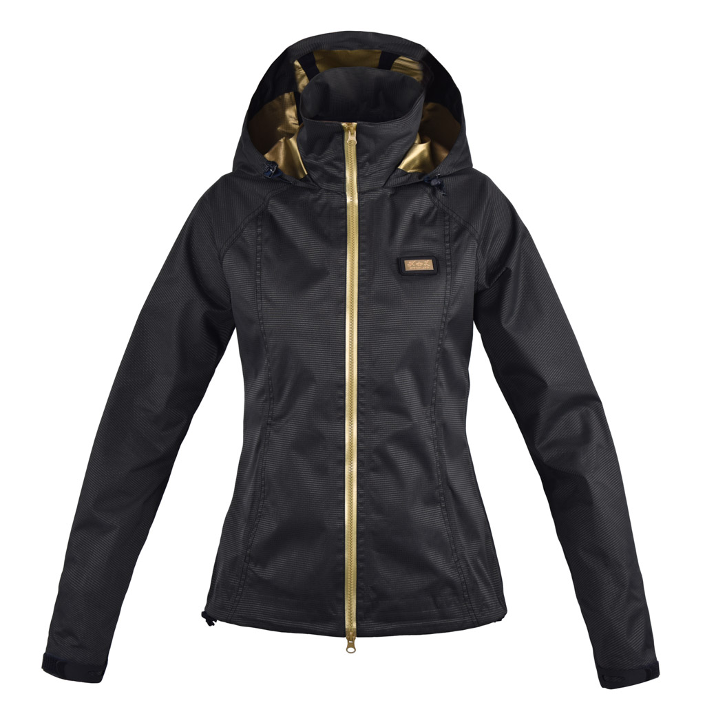 Wasserdichte, 2,5-lagig, metallisch überzogene Innenseite. Ripstop-Material. Versteckte Kapuze. Versiegelte Nähte. Belüftungsösen. 2-Wege-Reißverschluss aus Metall. Reißverschlusstaschen. Kordelzug im Saum. Metallaufnäher auf der Brust.