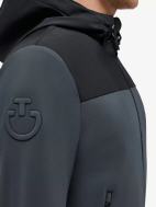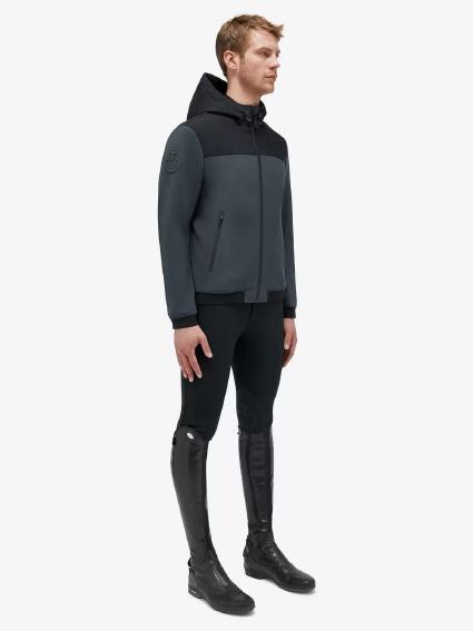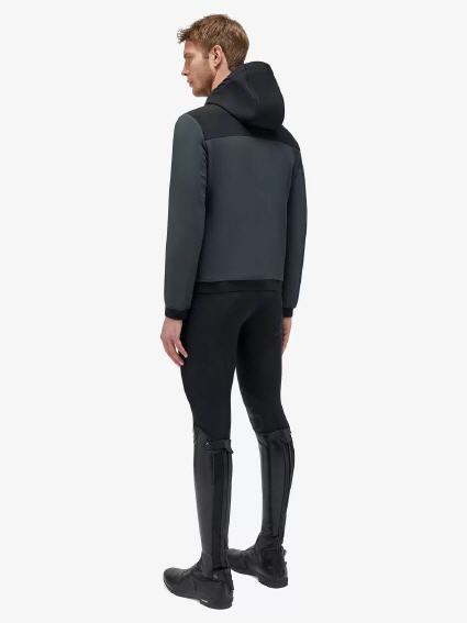 Diese Herren-Softshell von Cavalleria Toscana ist ein vielseitiges und raffiniertes Kleidungsstück, das sich perfekt für kühlere Tage eignet. Die Softshell aus hochwertigem Jersey bietet mit einer praktischen Kapuze und einem Samtfutter einen außergewöhnlichen Tragekomfort und einen Hauch von Luxus. Der zentrale Verschluss verfügt über einen wasserabweisenden Reißverschluss mit mattschwarzer Beschichtung, der Schutz vor den Elementen bietet. Der Reißverschlussschieber ist an der gefütterten Seite des Reißverschlusses angebracht und hat ein modernes und funktionales Design. Die Taschen sind außerdem mit wasserabweisenden Reißverschlüssen ausgestattet, in denen Ihre Sachen sicher aufbewahrt werden. Das CT-Logo ist elegant auf dem rechten Ärmel platziert und bestätigt die Authentizität und Qualität des Kleidungsstücks. Diese Softshell ist ideal für alle, die Stil und Funktionalität in nur einem Kleidungsstück suchen.