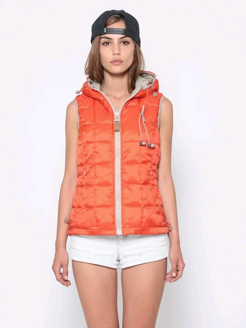Coole Damen Wendeweste mit breitem Reißverschluss und Leder-Zipper.