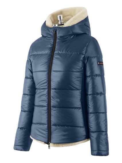 Warm wattierte Damen Steppkjacke von ANIMO. Die gefütterte Jacke ist ideal für die kältere Jahreszeit geeignet und hält durch die Kapuze, die mit einem Druckknopf befestigt werden kann und den Stehkragen schön warm. Aufgrund des figurbetonten Schnitts ist LISIA auch für das Training geeignet, da sie den Reiter nicht in seiner Bewegungsfreiheit einschränkt. Das leicht glänzende Material ist besonders schick und macht die Jacke zum Hingucker im Stall oder im Alltag.