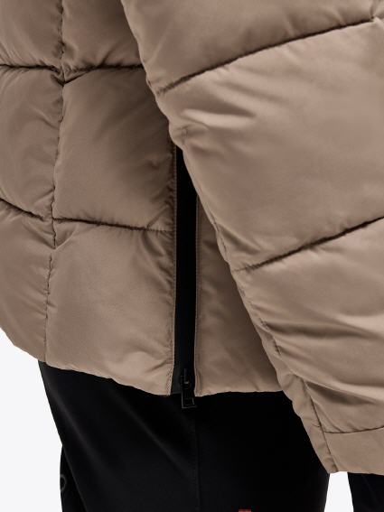 Aus wasserabweisendem, windblockierendem Nylongewebe und horizontaler Steppung die dafür sorgt die Wärme zu halten. Die warme, geräumige Kapuze, die Handstulpen und der Reißverschluss aus getaptem Band sind funktionale Details, die für zusätzlichen Kälteschutz sorgen. Die Reißverschlüssen an den Seiten sorgen für maximale Bewegungsfreiheit und zusätzlichen Komfort.