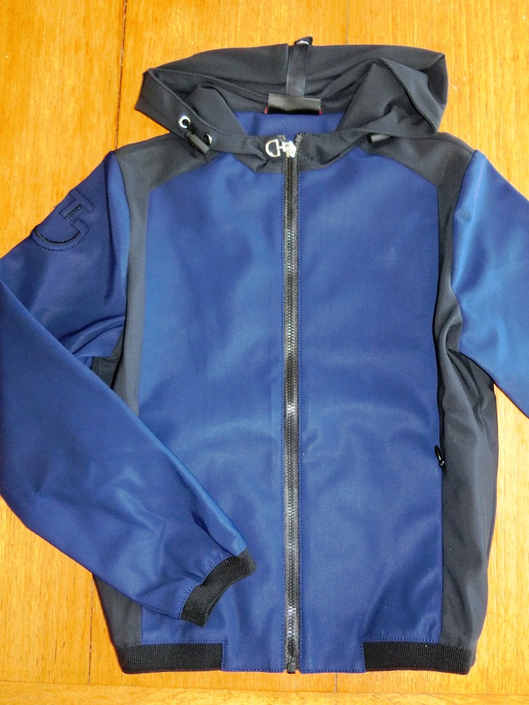 Sportive Kinder Softshell Jacke in navy/schwarz mit aufrollbarer Kapuze mit Tunnelzug. Zwei Reißverschlusstaschen. Ripp-Bündchen. CT-Logo auf dem Ärmel.