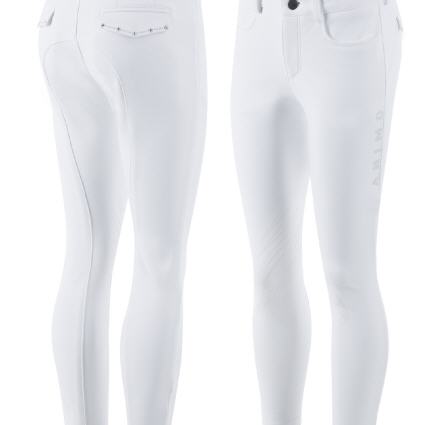 Kinder Kniegrip Reithose von ANIMO aus leichtem und blickdichten Material "NEXT", mit maximalem Tragekomfort und schicker Passform. Das Material NEXT ist super elastisch, atmungsaktiv und schnelltrocknend und somit ideal für den Reitsport geeignet. Praktisch ausgestattet mit zwei Fronteinschubtaschen. Ein Highlight sind die kleinen detailverliebten Strass Applikationen auf der hinteren Pocket-Tasche und das plakative ANIMO Strass-Logo am linken Bein. Diese Reithose wird von ANIMO direkt in Italien geschneidert.