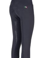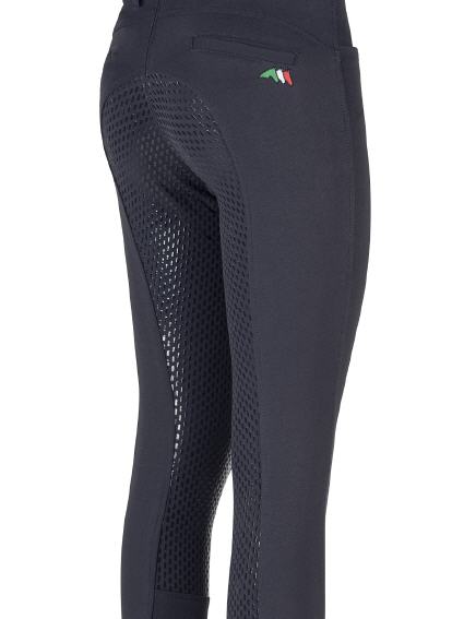 Mächen Reithose mit Voll-Grip-Besatz für bessere Stabiltät im Sattel. Ausgesprochen elastisch und atmungsakitv mit coolem Equiline-Logo Ton-on-Ton auf dem Hosenbein und dreifarbigem Logo auf der Gesäßtqasche. Die Taillenweite ist mit Gummiband weitenregulierbar. Maschinenwaschbar.