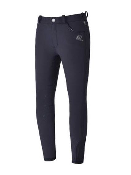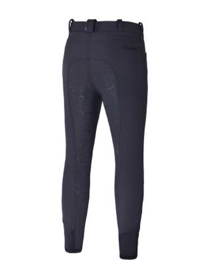 Reithose aus weichem Funktionsgewebe. Robuster 4-Wege-Stretch. Wasser-, staub- und fettabweisend. Atmungsaktiv. Innen mit wärmendem Fleece. Voll-Grip mit KL-Logo. Silikonpaspelierung mit silbernen Streifen an den Gürtelschlaufen vorne und hinten. Logo-Stickerei vorn und hinten. Firmenaufnäher am Oberschenkel. Metallhaken an der seitlichen Gürtelschlaufe.