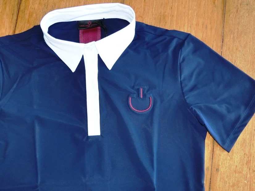 Jungen Reitshirt von CAVALLERIA TOSCANA mit weißem Kragen und kurzer Knopfleiste vorne.