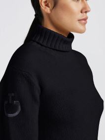 Der Oversize-Pullover aus Lambswool von Cavalleria Toscana für Damen ist ein unverzichtbares Kleidungsstück für Reiter, die an kälteren Tagen Komfort und Stil suchen. Dieser Pullover aus hochwertiger Lammwolle bietet ein warmes und weiches Tragegefühl und eignet sich damit perfekt für den Alltag und die Entspannung nach Wettkämpfen. Die natürliche Wolle sorgt für hervorragende thermische und atmungsaktive Eigenschaften und hält den Körper auch unter härtesten Bedingungen warm und trocken. Das Design des Pullovers verfügt über einen hohen Oversize-Kragen, der sich ideal zum Schutz vor Wind und Kälte eignet. Die langen Ärmel und der Rumpf des Pullovers haben eine lockere Passform, die Bewegungsfreiheit und dauerhaften Komfort gewährleistet. Rippstrickdetails an den Bündchen und am Saum verleihen dem Kleidungsstück einen Hauch von Eleganz und Raffinesse, während die schlichte Strickkonstruktion ihm einen sauberen und modernen Look verleiht. Das CT-Logo, das auf dem rechten Ärmel aufgestickt ist, steht für die Liebe zum Detail und das Engagement für Qualität bei Cavalleria Toscana.