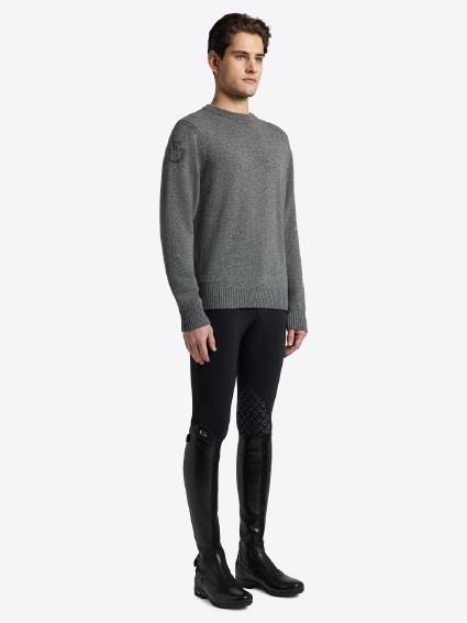Der Herrenpullover Cavalleria Toscana mit Rundhalsausschnitt aus reiner Wolle ist ein unverzichtbares Kleidungsstück für Reiter, die an kälteren Tagen Komfort und Stil suchen. Dieser Pullover aus hochwertiger Wolle sorgt für Wärme und Weichheit und eignet sich damit perfekt für den Alltag und zum Entspannen nach Wettkämpfen. Die natürliche Wolle sorgt für hervorragende thermische und atmungsaktive Eigenschaften und hält den Körper auch unter härtesten Bedingungen warm und trocken. Das Design des Pullovers zeichnet sich durch einen klassischen Rundhalsausschnitt aus, Rippstrickdetails an den Bündchen und am Saum sorgen für einen Hauch von Eleganz und Raffinesse, während die schlichte Strickkonstruktion ihm einen klaren und modernen Look verleiht. Das CT-Logo, das auf dem rechten Ärmel aufgestickt ist, steht für die Liebe zum Detail und das Engagement für Qualität bei Cavalleria Toscana.