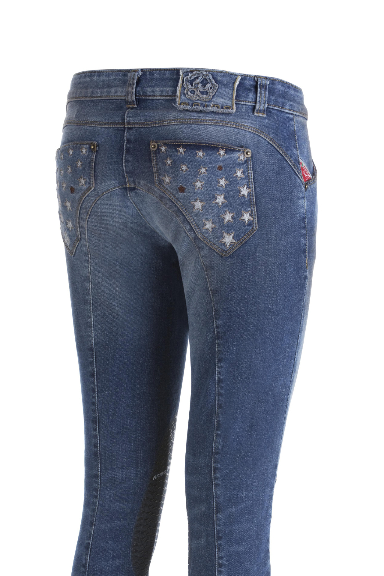 JEANS Damen-Reithose von ANIMO im 5-Pocket-Style mit gestickten Sternen auf den Gesäßtaschen.