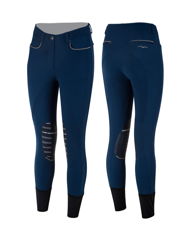 Animo Damen Reithose mit farblich abgesetzter Paspel an den Taschen vorn und an den angedeuteten Taschen hinten.