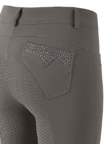 Die normalhoch geschnittene Damenreithose mit Vollgrip Besatz, hat eine aufwendige Applikation mit Nieten und Kristallen auf den Gesäßtaschen. Das verwendete Winning Line Material sorgt für höchsten Tragekomfort, die Hose füht sich angenehm auf der Haut an - wie eine zweite Haut.