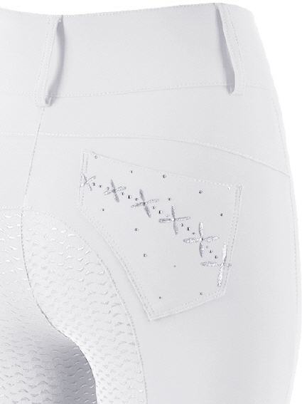Die ANIMO Damenreithose mit Vollgrip Besatz und etwas höheme Bund, hat eine aufwendige Applikation mit Nieten und Kristallen auf den Gesäßtaschen. Das verwendete Winning Line Material sorgt für höchsten Tragekomfort, die Hose fühlt sich an wie eine zweite Haut.