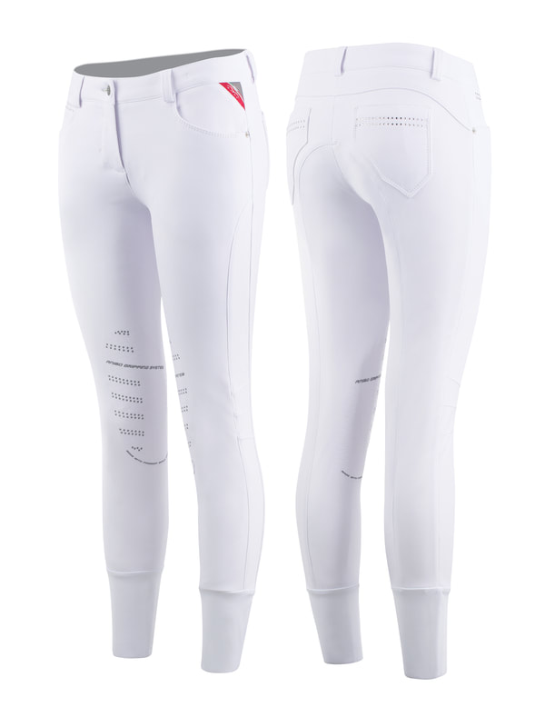Damen Reithose von ANIMO im 5-Pocket-Style mit Ton-in-Ton Glitzersteinchen an den Taschen hinten und einer Tasche vorn.