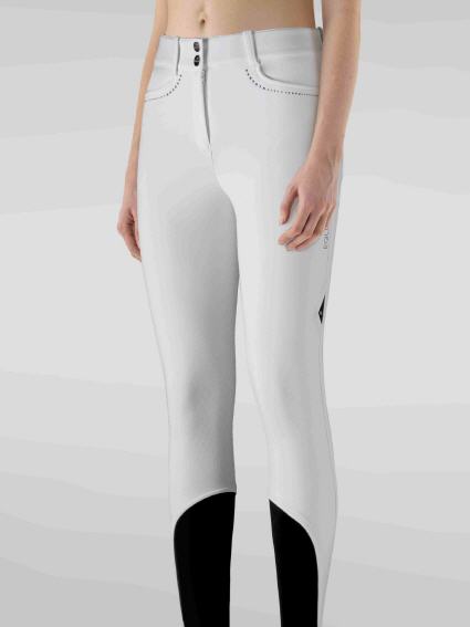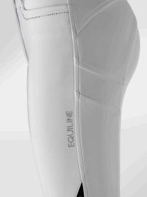EQUILINE Damen Reithose mit Fullgrip und schönen Details und hohem Bund. Aus B-Move All Seasons Material gefertigt bietet diese Reithose außergewöhnliche Elastizität und Komfort. Das Design mit hoher Taille sorgt sowohl für eine schmeichelhafte Passform als auch für zusätzlichen Halt. Das innovative "Y"-Vollgripsystem verbessert die Kontrolle und Stabilität. Zu den Designmerkmalen gehören glamouröse Ton-in-Ton-Strasssteine auf der Vordertasche und Ton-in-Ton-Strasssteine mit Equiline-Logo auf der Rückseite. Mit einem Stretch-Befestigungssystem mit Logo am unteren Bein verbindet diese Reithose Funktionalität und Stil nahtlos.